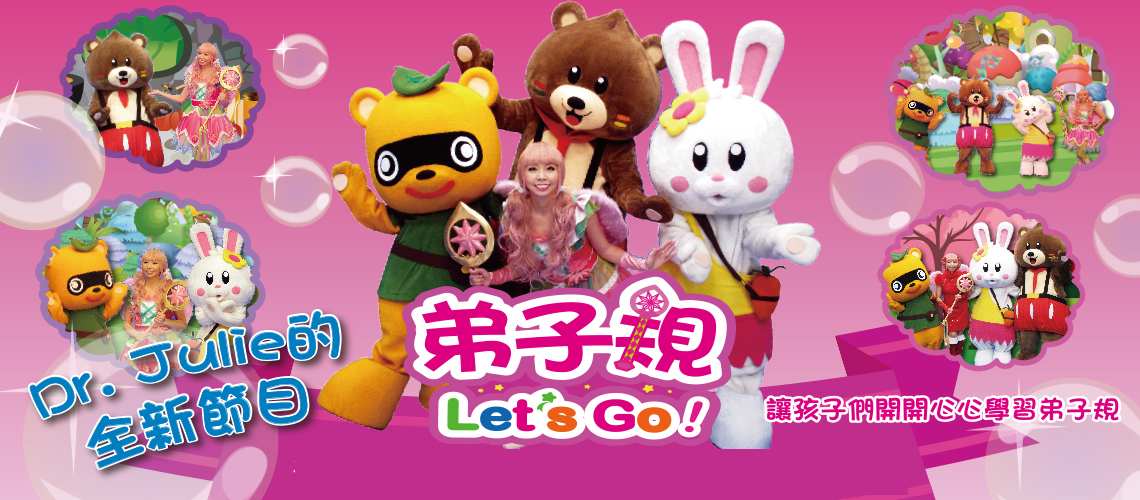 為了讓大家能夠活用弟子規,深受觀眾喜愛的著名佛曲演唱家Dr. Julie,以音樂結合弟子規,同時配合生動的舞蹈、可愛的動畫,製作出品質精緻的「弟子規Let’s Go」,連學齡前的小朋友都能從中了解弟子規的精髓。 即日起,竭誠歡迎家長和孩童共同觀賞這個寓教於樂的親子節目,全家大小一起來學習弟子規!
